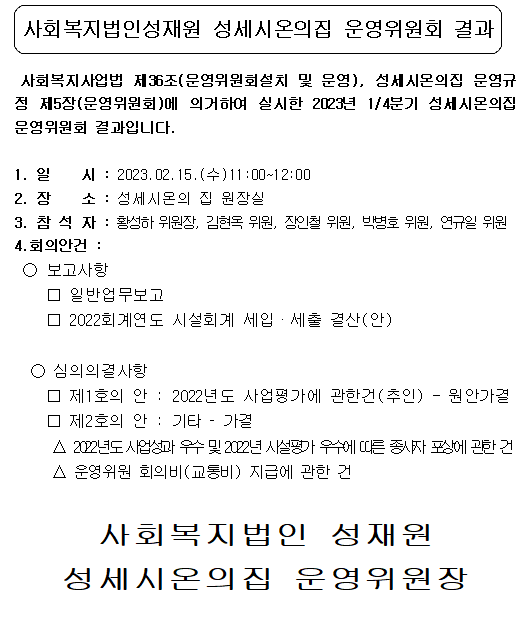 2023년 1/4분기 운영위원회 결과