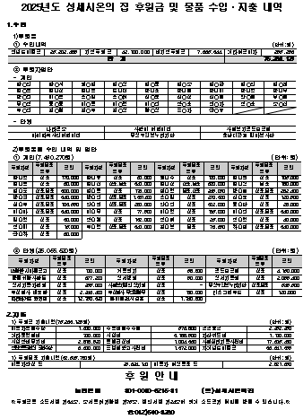 2025년도 성세시온의 집 후원금 및 물품 수입·지출 내역