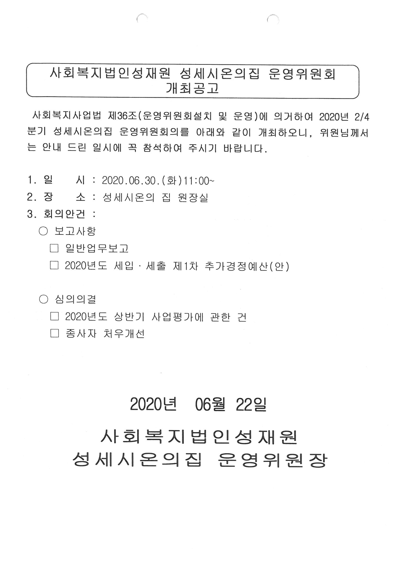 2020년도 2/4분기 운영위원회 개최공고