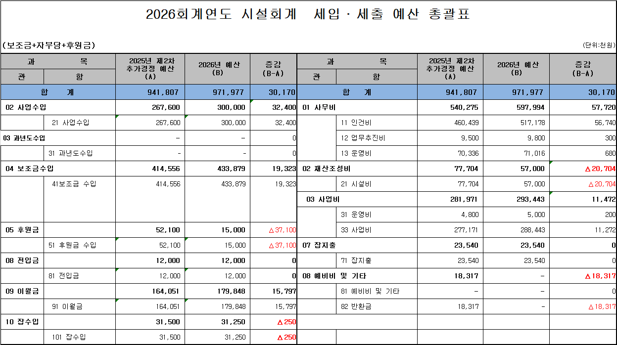 사회복지법인 및 사회복지시설 재무·회계규칙 제19조에 따라 공시합니다